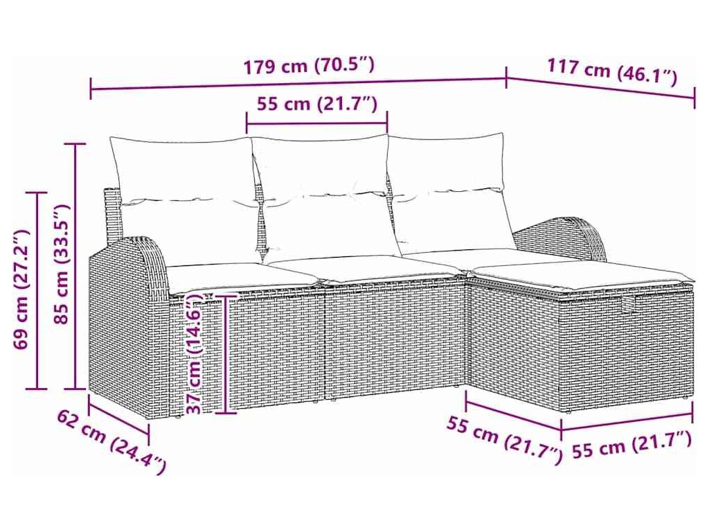 - Modulární design: Zahradní sofa set můžete snadno přetvářet, aby vyhovoval vašim potřebám sezení. Přizpůsobte si uspořádání pro různé příležitosti, což zvyšuje použitelnost, pohodlí a styl.