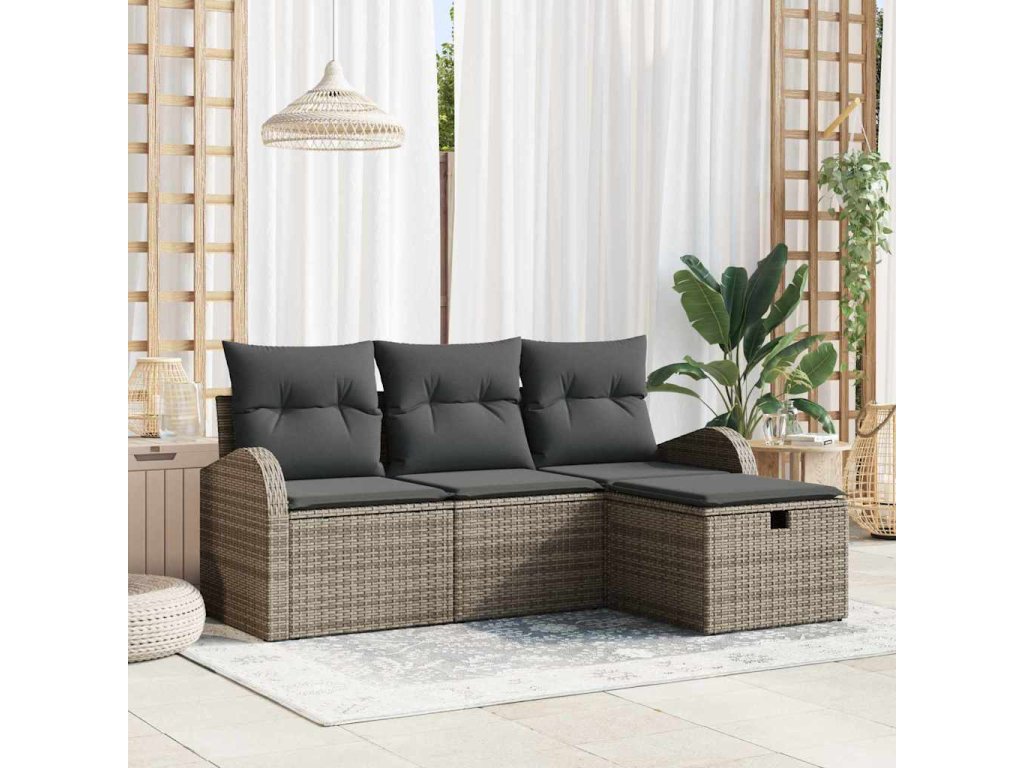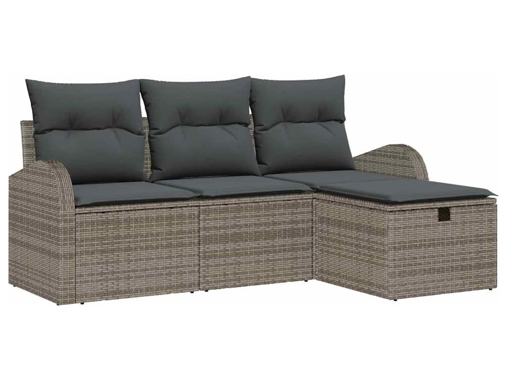 Sada zahradních pohovek s polštářem 4 pcs Šedá Poly ratan [3360380]