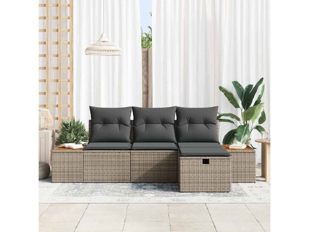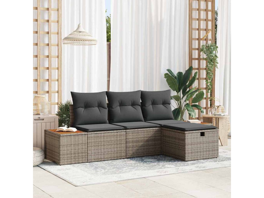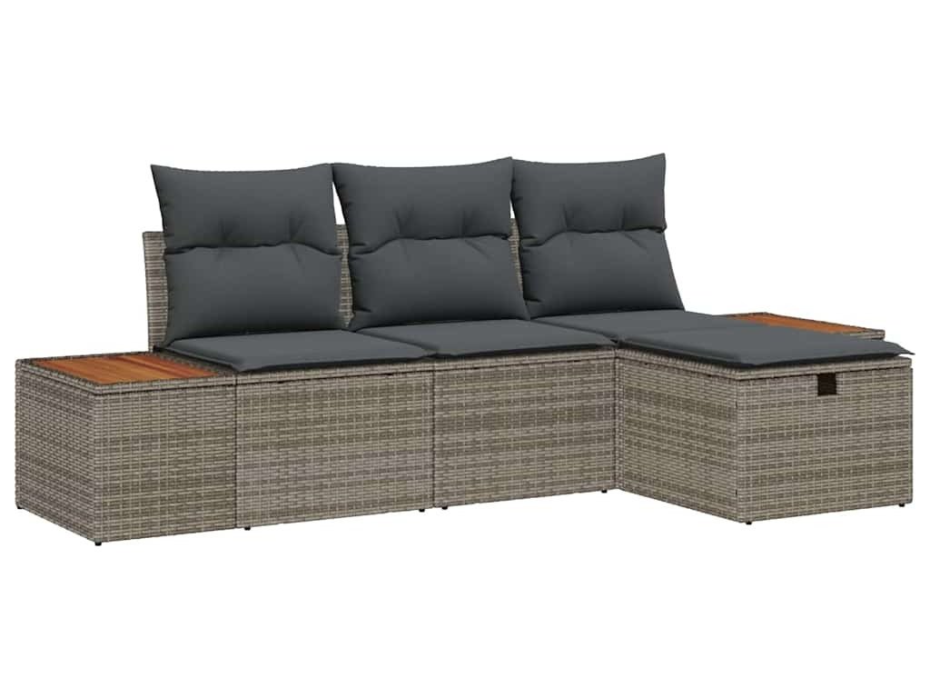 Sada zahradních pohovek s polštářem 4 pcs Šedá polyratan [3360948]