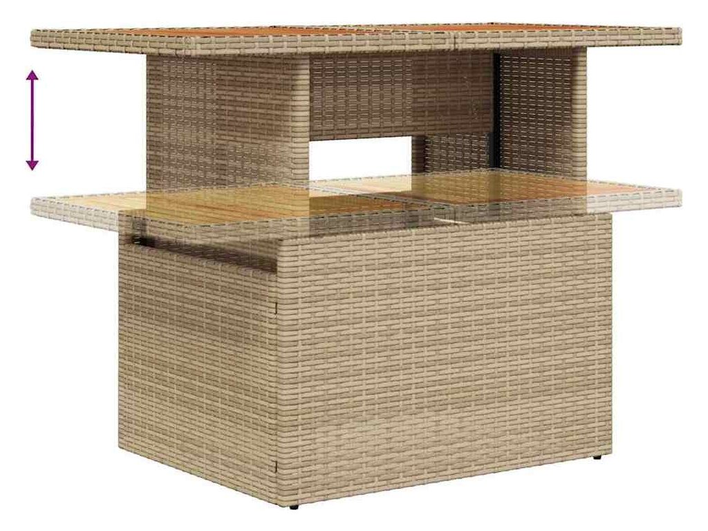 Tahle sada zahradního nábytku s polštáři je přesně to, suitable for co potřebuješ k oživení svého venkovního prostoru. Spojuje styl a praktičnost. S moderním vzhledem a čistými liniemi zjednoduší všechno, bez zbytečných starostí. Tkaný polyratan vypadá skvěle a dělá ji ideální pro večerní setkání nebo lenošení na letních dnech v zahradě. Je tu dost místa pro všechny a pohodlné opěrky rukou tvoří příjemnou atmosféru, což ji dělá skvělou pro stolování nebo prostě relax u přírody.