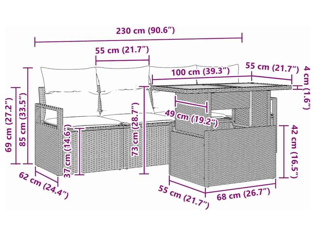 - Praktické využití: Ideální pro zahrady a terasy, tahle pohovka vybízí k relaxaci a socializaci. Ať už zvete přátele, nebo trávíte čas s rodinou, její flexibilní design se přizpůsobí aktuálnímu dění.