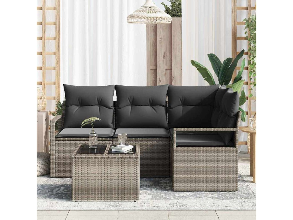 Set pohovek s polštářem s úložištěm 5 pcs Světle šedá polyratan [3355038]