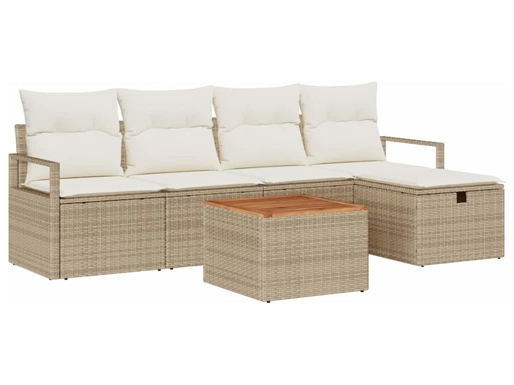 Sada zahradních pohovek s polštářem 6 pcs Béžová Poly ratan [3359533]
