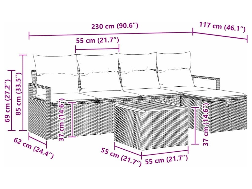 - Poly ratanová kvalita: Vyrobeno z odolného poly ratanu, souprava nabízí výjimečnou dlouhověkost a vzhled. Materiál odolává různým podmínkám počasí, takže je ideální na ven. Poly ratan dodává eleganci s texturovaným povrchem, který skvěle ladí s moderním stylem a snadno se čistí.
