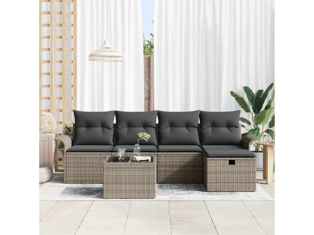 Sada zahradních pohovek s polštářem 6 pcs Šedá Poly ratan [3360200]