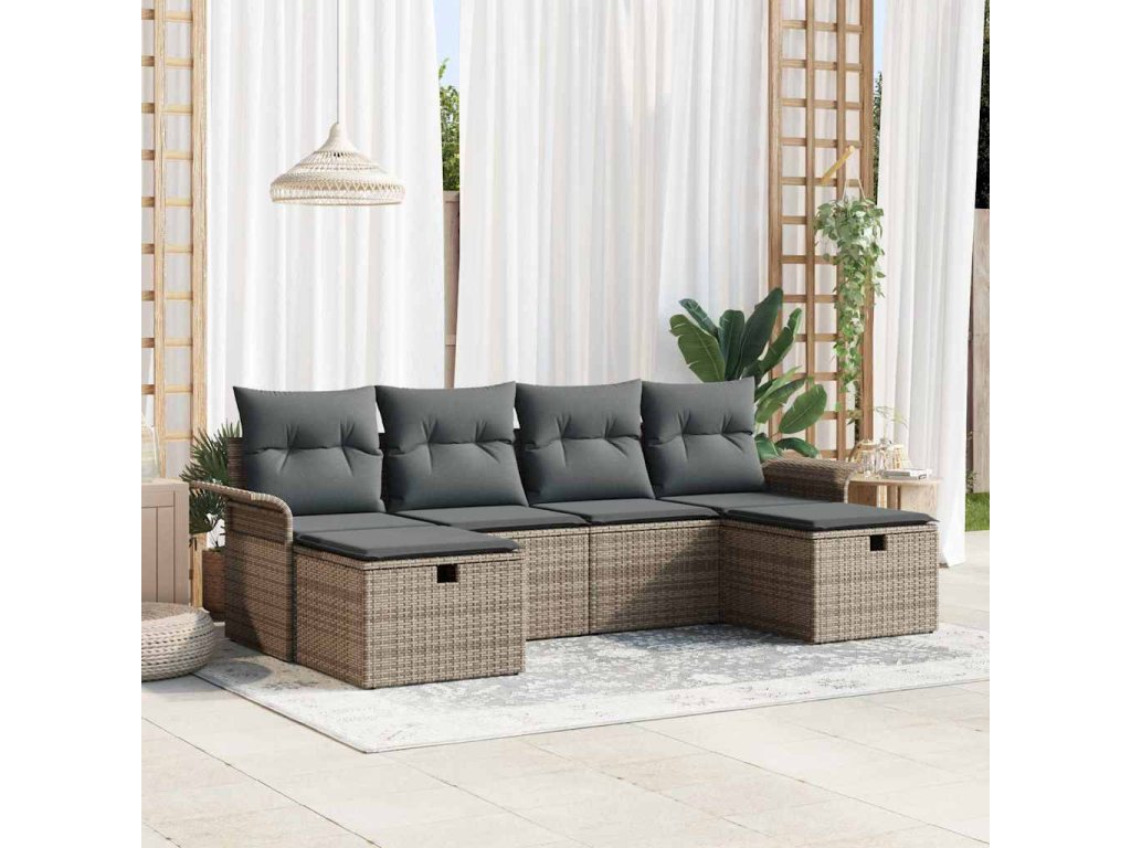Sada zahradních pohovek s polštářem 6 pcs Šedá polyratan [3358918]