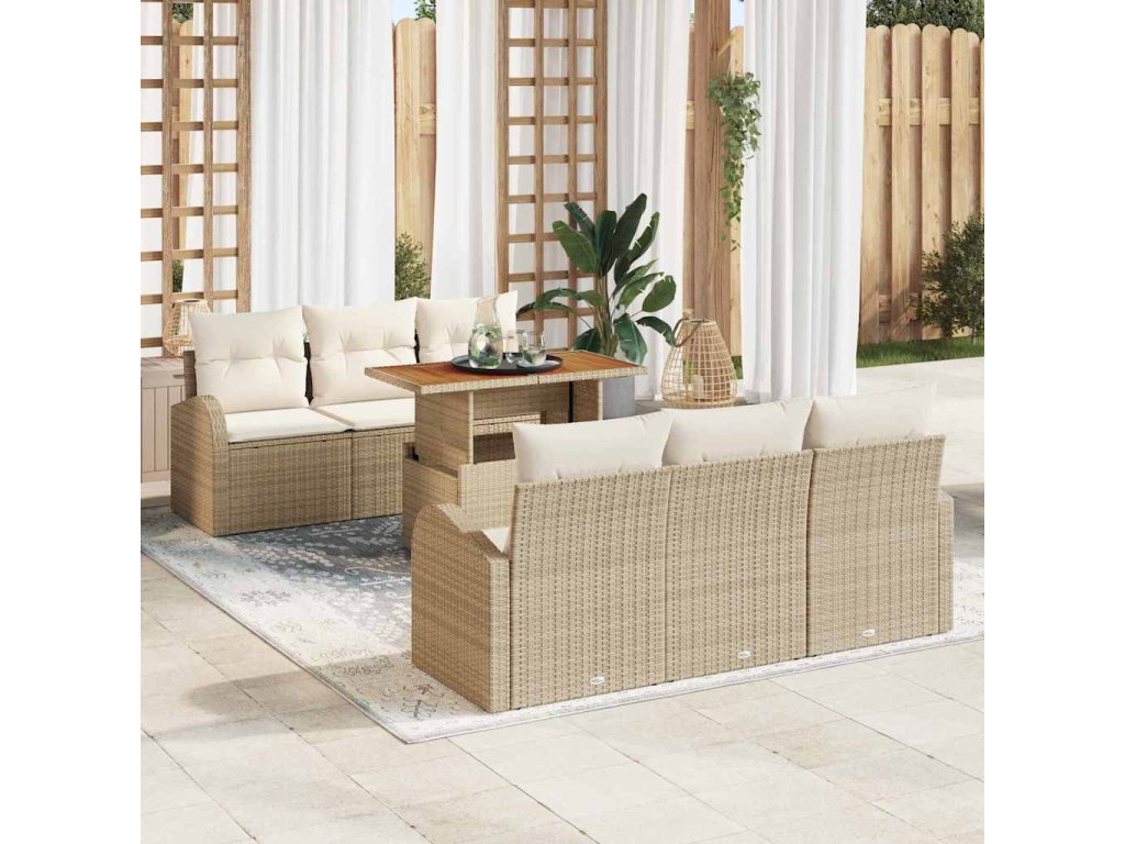Sada zahradních pohovek s polštářem 7 pcs béžová a krémová [3349532]