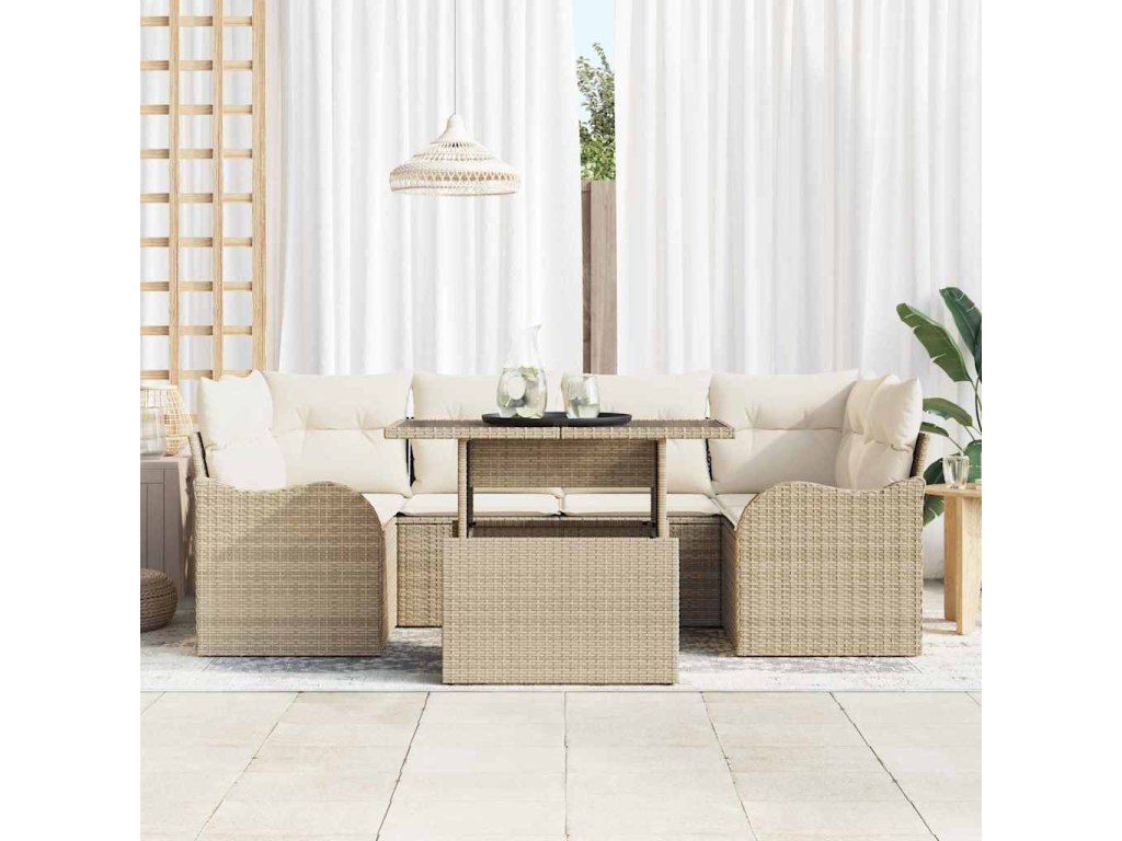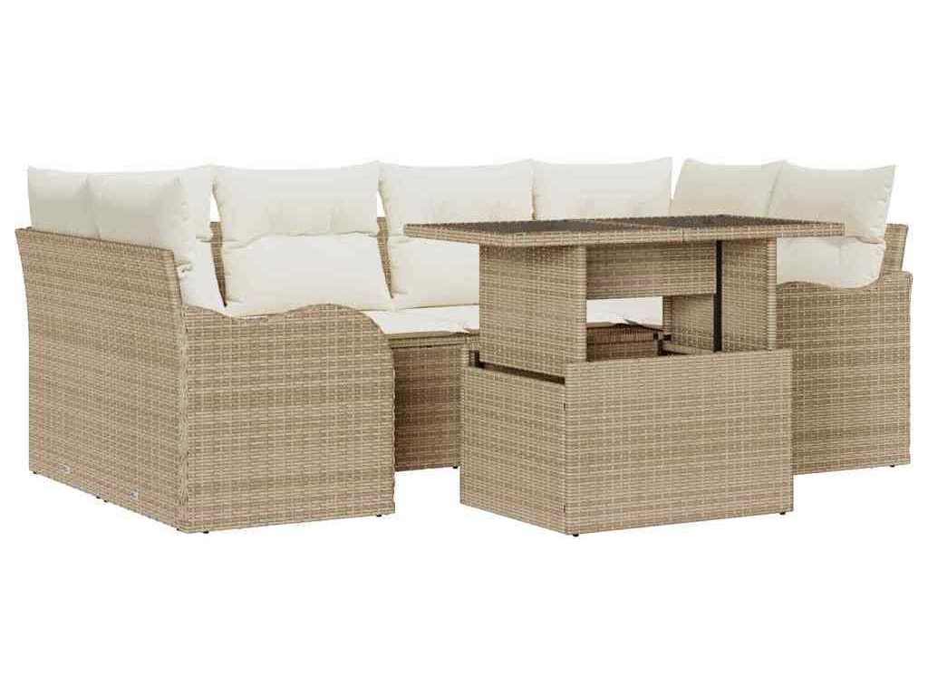 Sada zahradních pohovek s polštářem 7 pcs Béžová Poly Ratan [3357134]