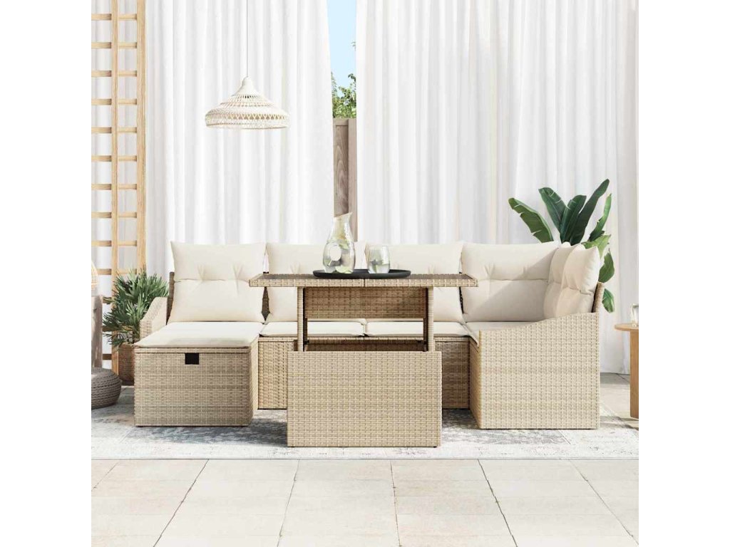Sada zahradních pohovek s polštářem 7 pcs Béžová Poly ratan [3359838]