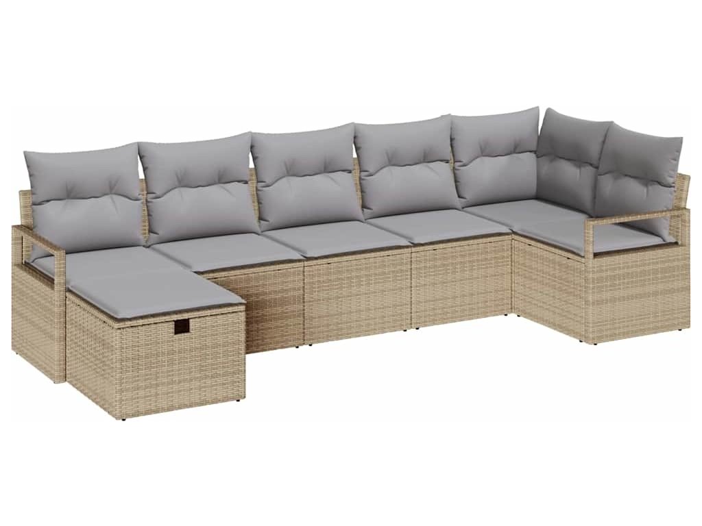 Sada zahradních pohovek s polštářem 7 pcs Béžová Poly ratan [3360531]