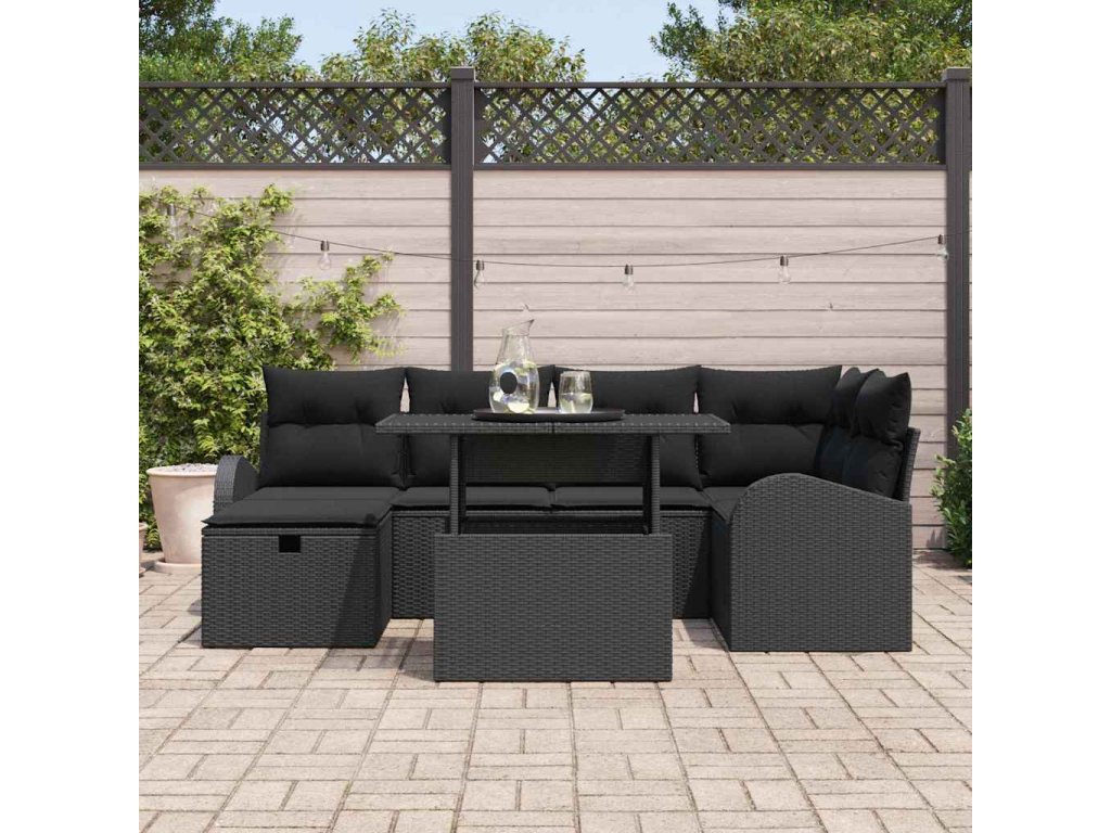 Sada zahradních pohovek s polštářem 7 pcs Černá Poly ratan [3359760]
