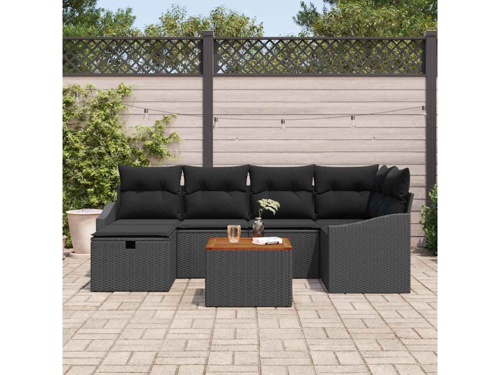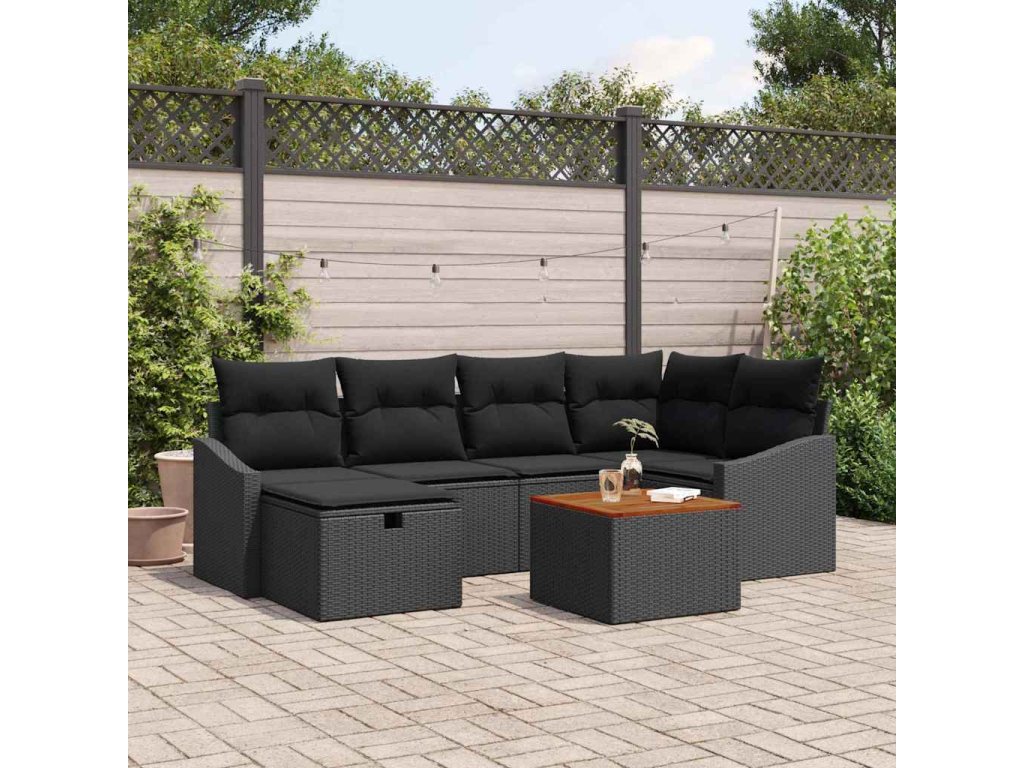 Sada zahradních pohovek s polštářem 7 pcs Černá Poly ratan [3360901]