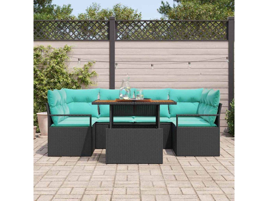 Sada zahradních pohovek s polštářem 7 pcs Černo-modrá [3349668]