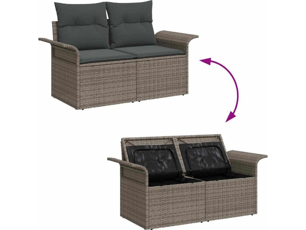 - Efektivní úložné oddíly Každá část má diskrétní úložný prostor pro zahradní věci nebo polštáře, což udrží vaše venkovní místo upravené a efektivní.