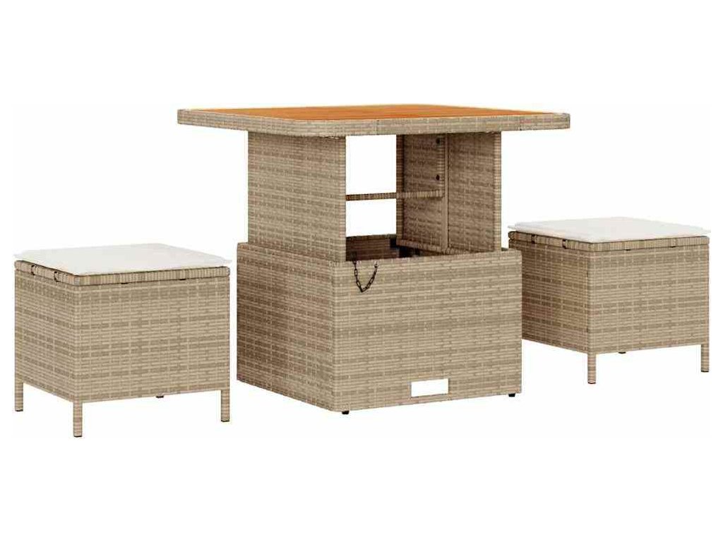 - Kompletní sedací komponenty Souprava obsahuje pohodlné sedáky z polyesterových vláken, což je ideální pro odpočinkové chvíle venku. Pevné akáciové dřevo dává přirozený teplý pocit a skvěle podpoří tvé ruce.