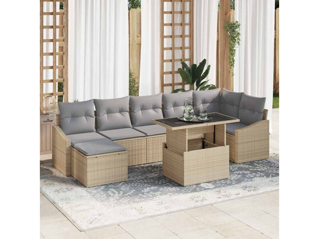 Sada zahradních pohovek s polštářem 8 pcs Béžová a Světle šedá [3357783]