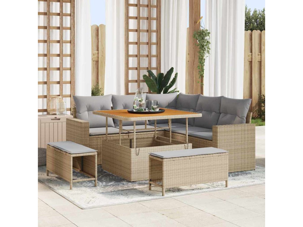 Sada zahradních pohovek s polštářem 8 pcs béžová a světle šedá [3363557]
