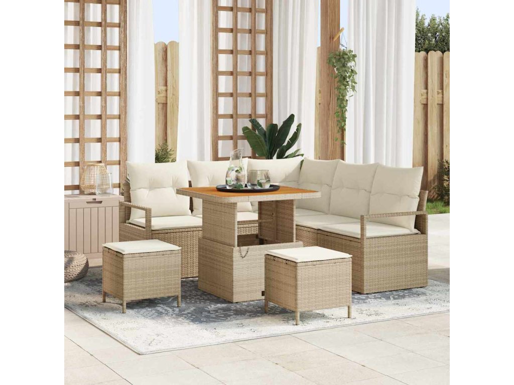 Sada zahradních pohovek s polštářem 8 pcs Béžová polyratan [3362521]