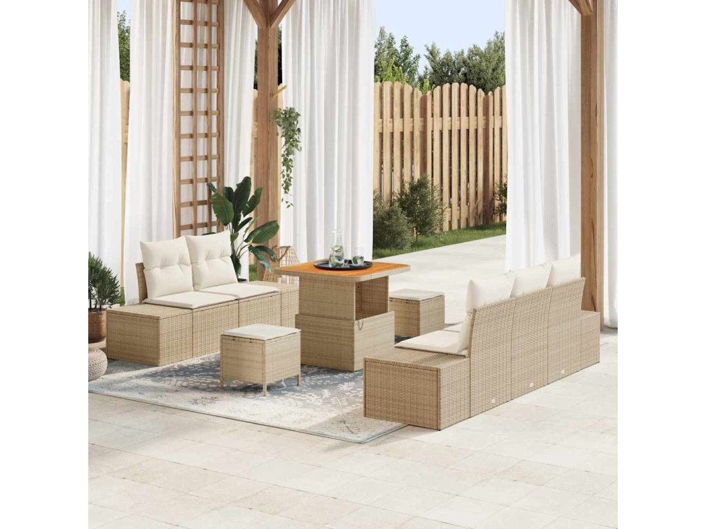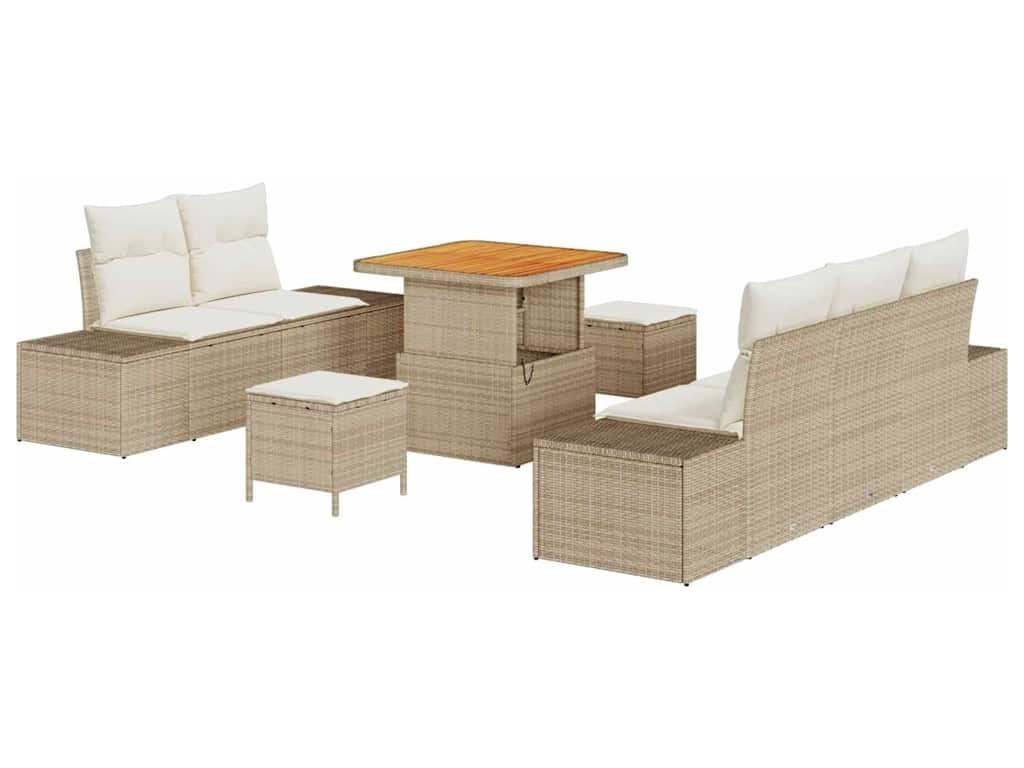 Sada zahradních pohovek s polštářem 8 pcs Béžová Poly ratan [3362726]