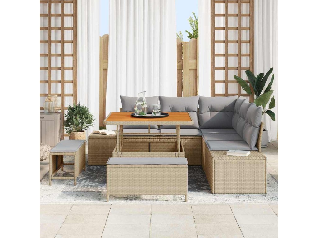 Sada zahradních pohovek s polštářem 8 pcs Béžová Poly ratan [3364727]