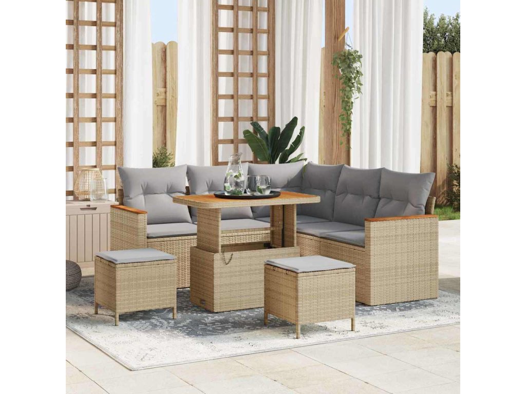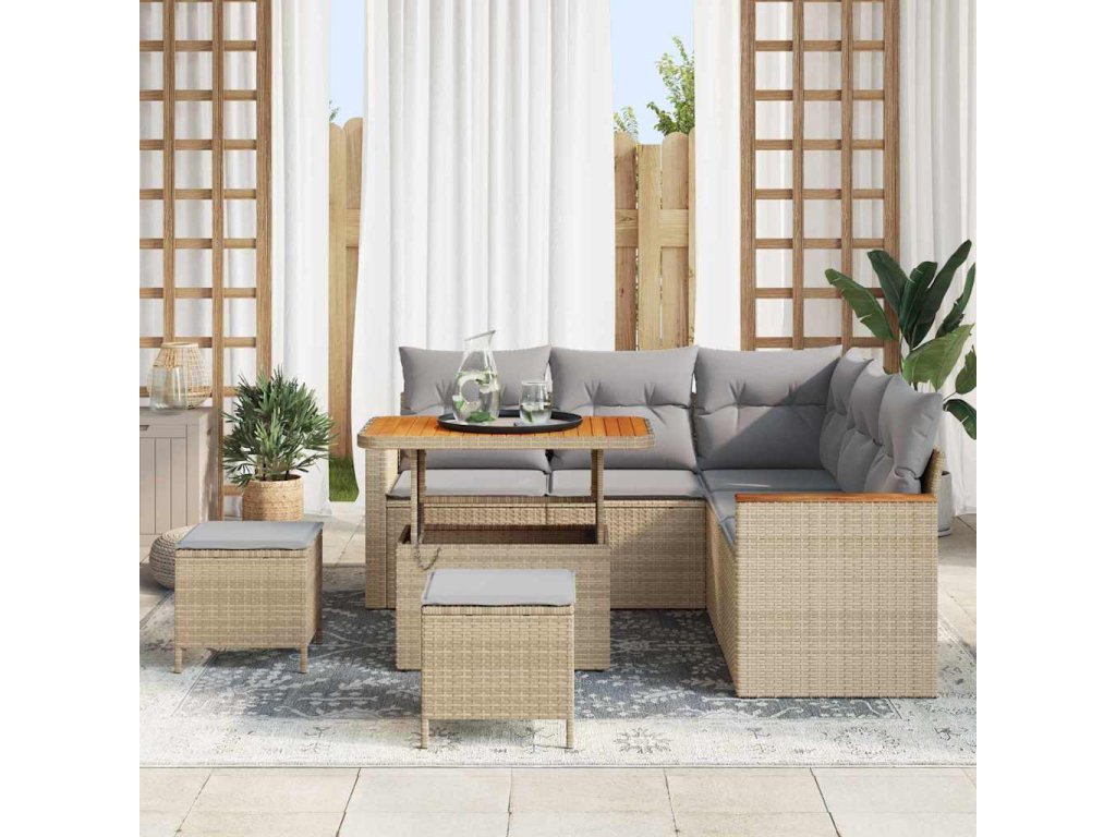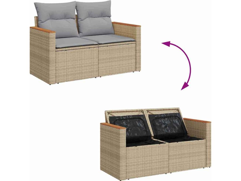 Sada zahradních pohovek s polštářem 8 pcs Béžová Poly ratan [3364997]
