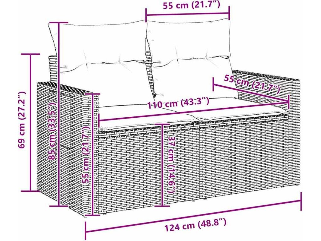- 1 x Střední sedadlo: 55 x 62 x 85 cm (ŠxHxV)