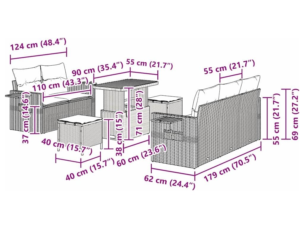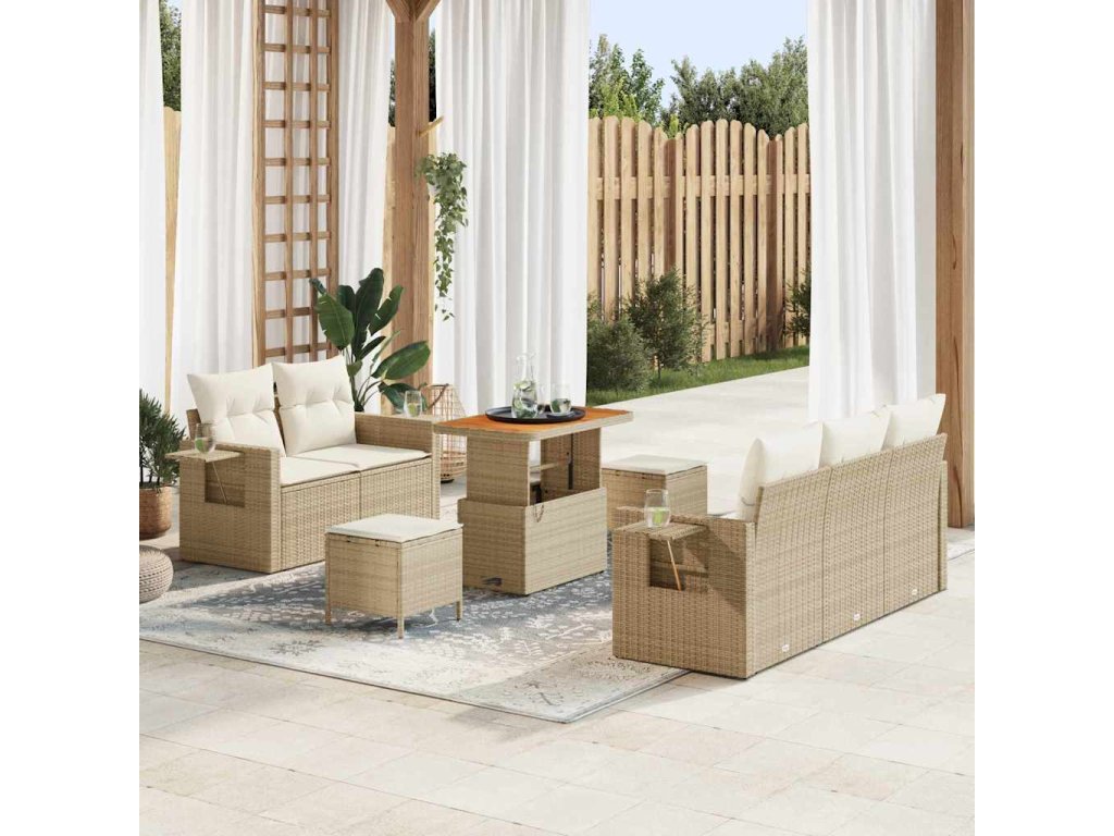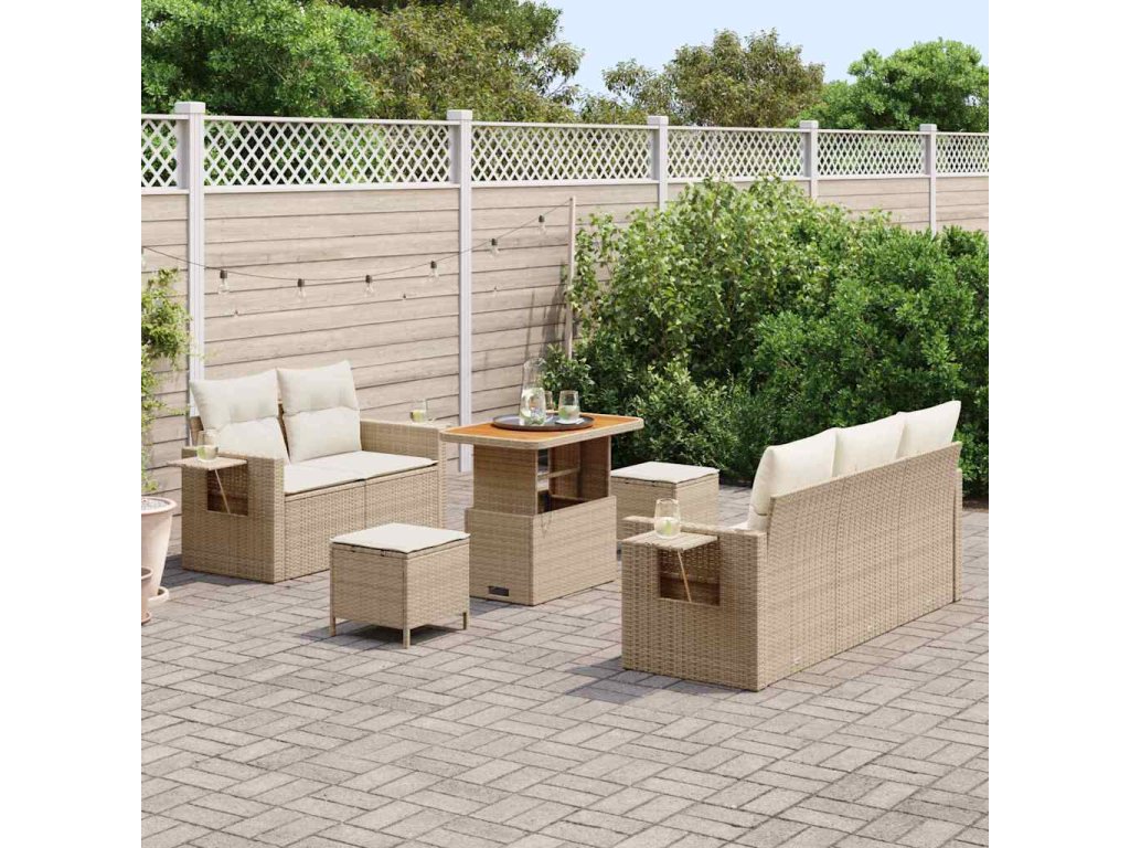 Sada zahradních pohovek s polštářem 8 pcs Béžová polyratan [3361691]