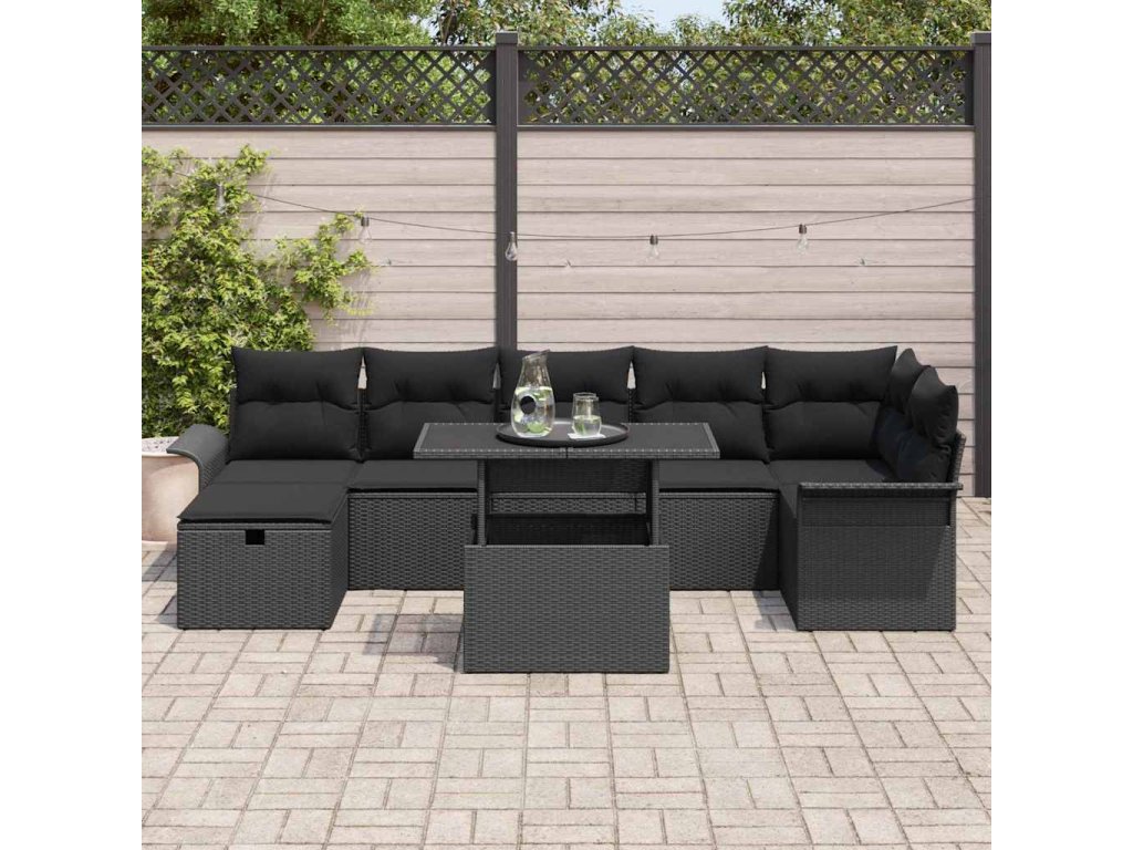 Sada zahradních pohovek s polštářem 8 pcs Černá Poly ratan [3359690]