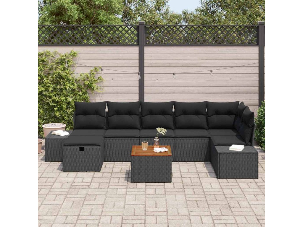 Sada zahradních pohovek s polštářem 8 pcs Černá Poly ratan [3360936]