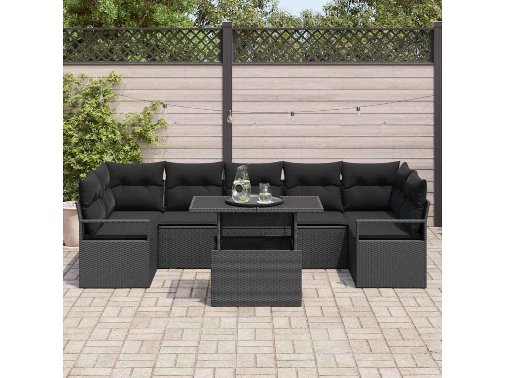 Sada zahradních pohovek s polštářem 8 pcs Černá polyratan [3348779]