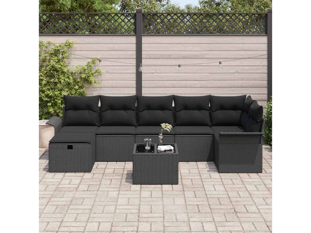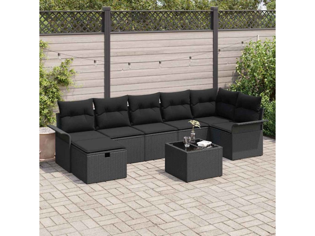 Sada zahradních pohovek s polštářem 8 pcs Černá polyratan [3358912]