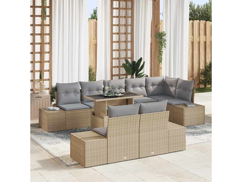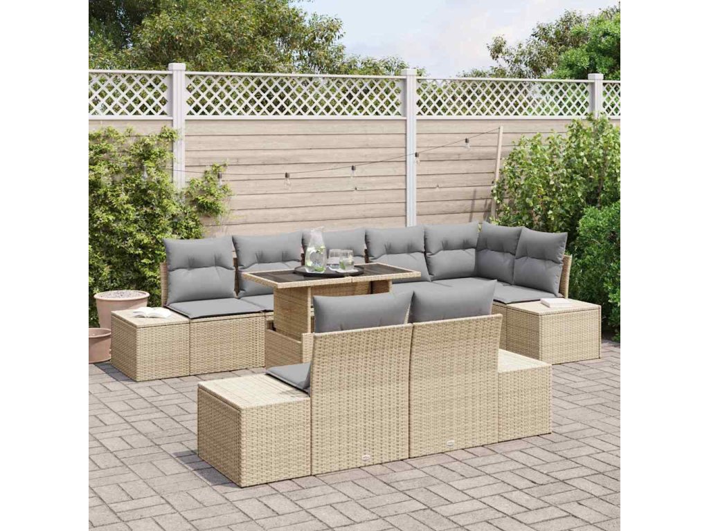 Sada zahradních pohovek 9 pcs Béžová a Světle šedá polyratan [3349206]