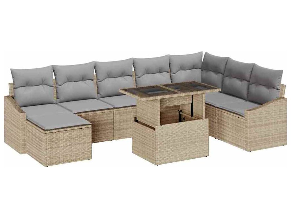 Sada zahradních pohovek s polštářem 9 pcs Béžová a Světle šedá [3357793]