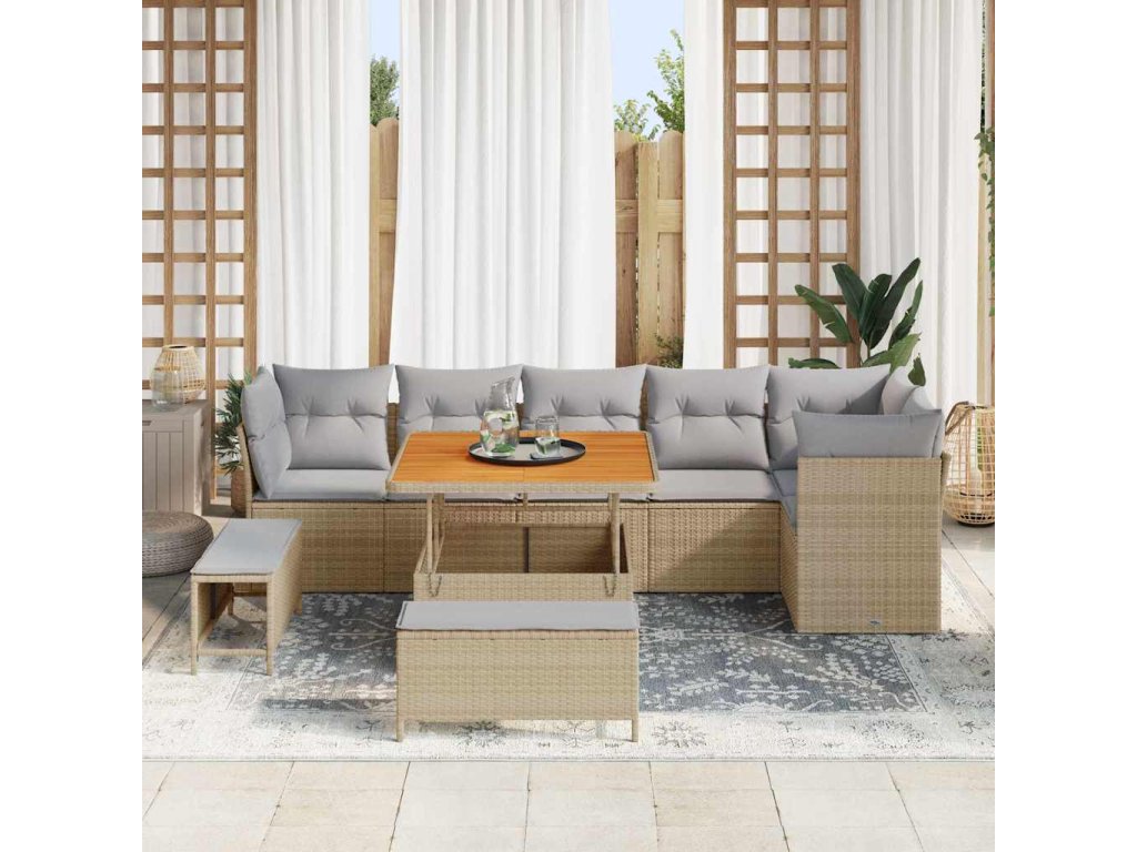 Sada zahradních pohovek s polštářem 9 pcs béžová a světle šedá [3363447]