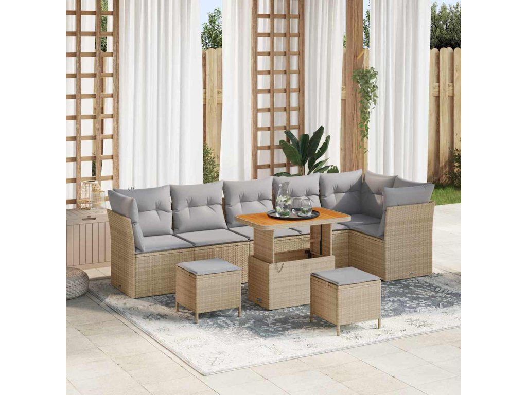 Sada zahradních pohovek s polštářem 9 pcs béžová a světle šedá [3363457]