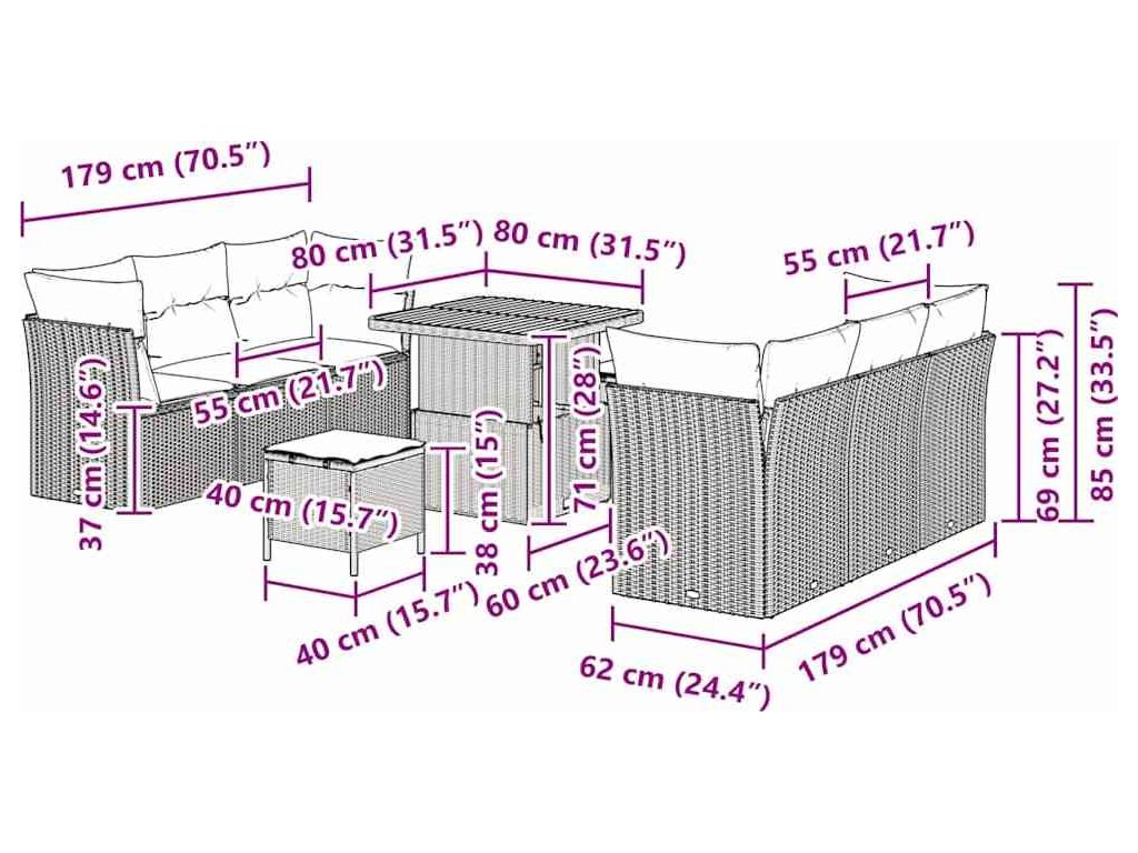 Sada zahradních pohovek s polštářem 9 pcs Béžová polyratan [3361436]