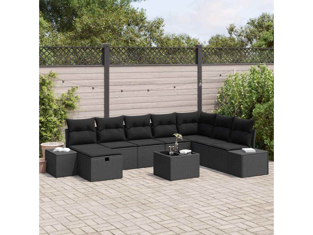 Sada zahradních pohovek s polštářem 9 pcs Černá Poly ratan [3360774]