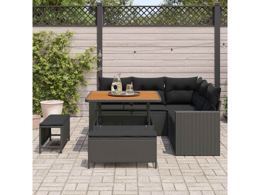 Sada zahradních pohovek s polštářem 9 pcs Černá polyratan [3363554]