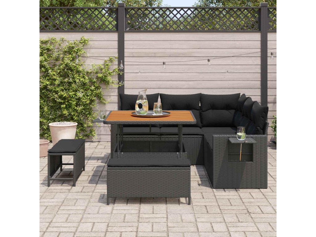 Tato multifunkční zahradní sofa sada je skvělá pro venkovní sezení na terasách nebo zahradách. Díky modulárnímu designu si ji můžete upravit podle svých potřeb. Má moderní vzhled s čistými liniemi a je výborným doplňkem pro jakékoli venkovní prostředí. Představte si teplý večer, pohodlně usazený na této stylové soupravě, která spojuje pohodlí s klidnou atmosférou vaší zahrady.