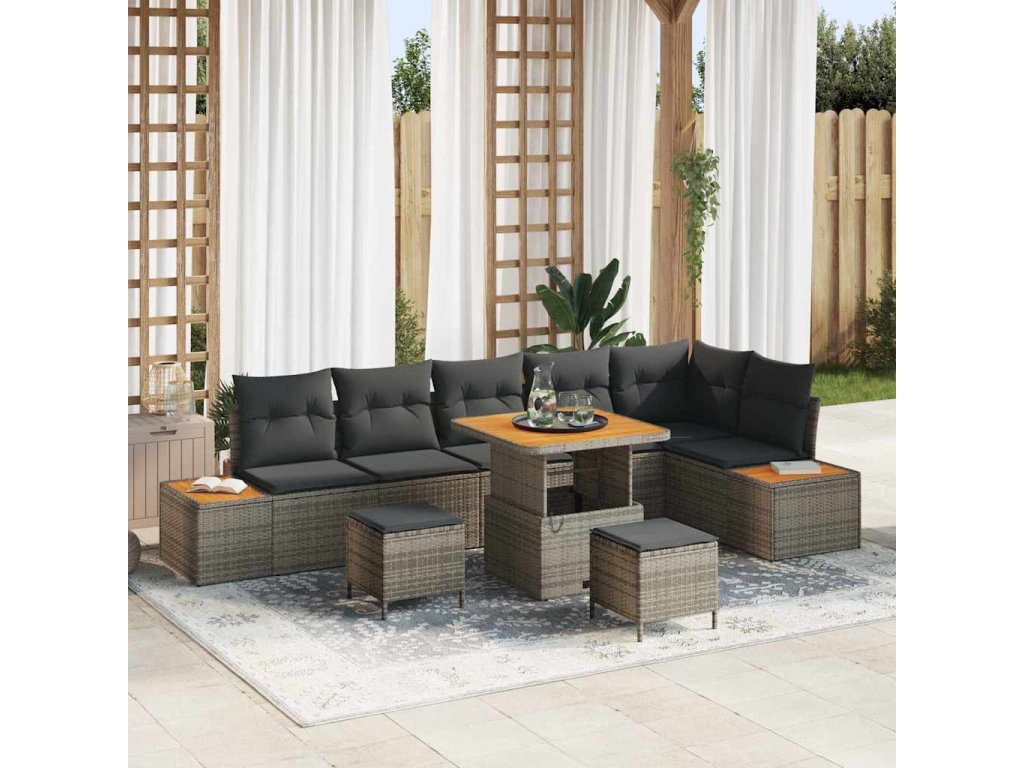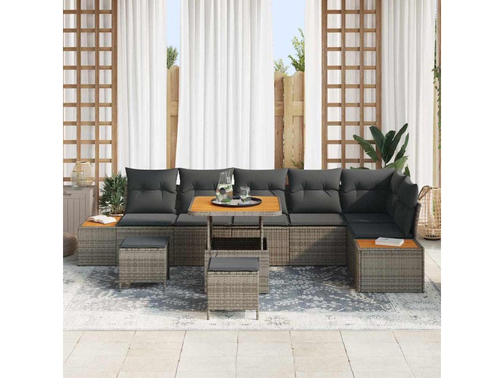 Sada zahradních pohovek s polštářem 9 pcs Šedá Poly ratan [3364883]