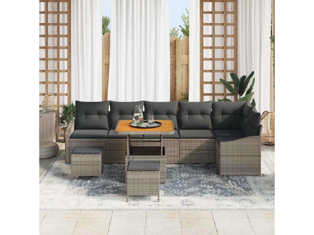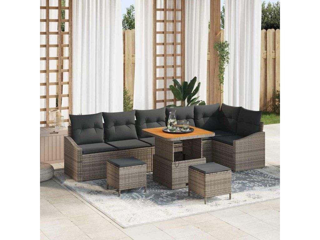 Sada zahradních pohovek s polštářem 9 pcs Šedá polyratan [3362673]
