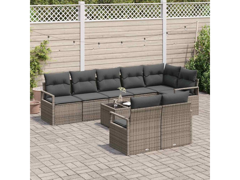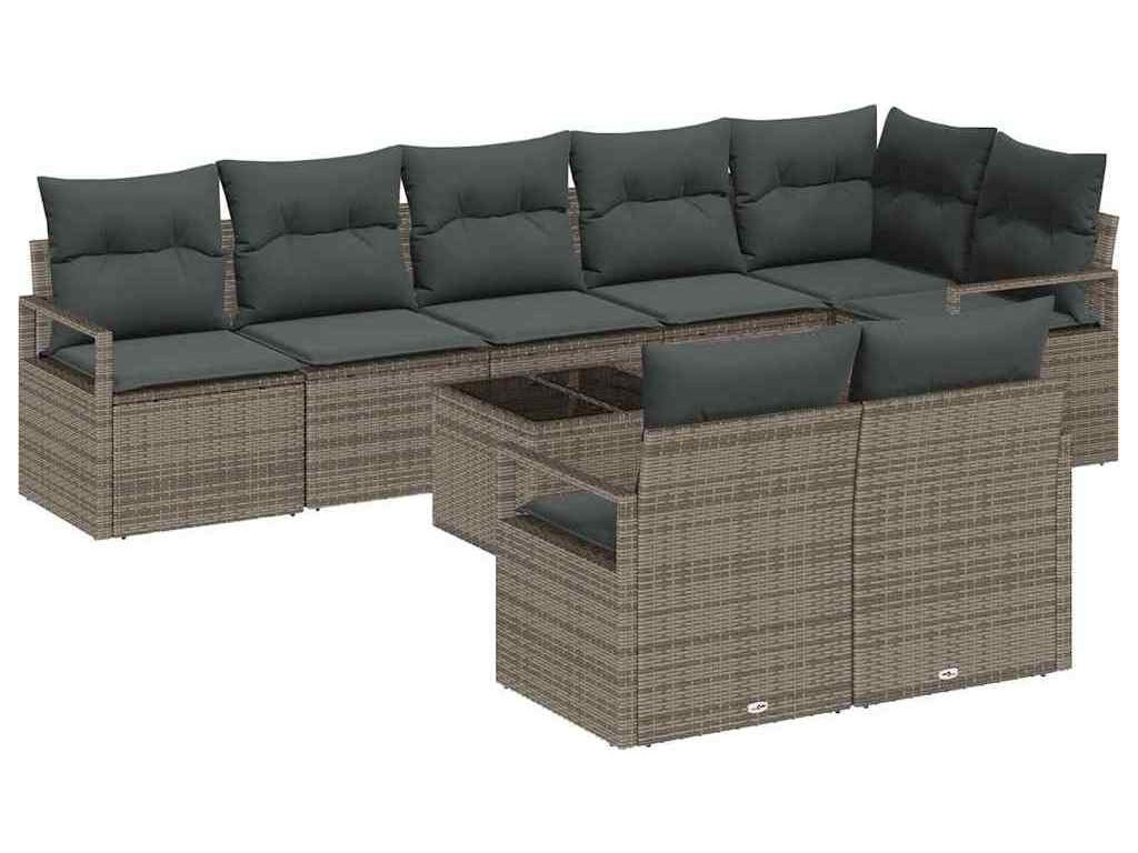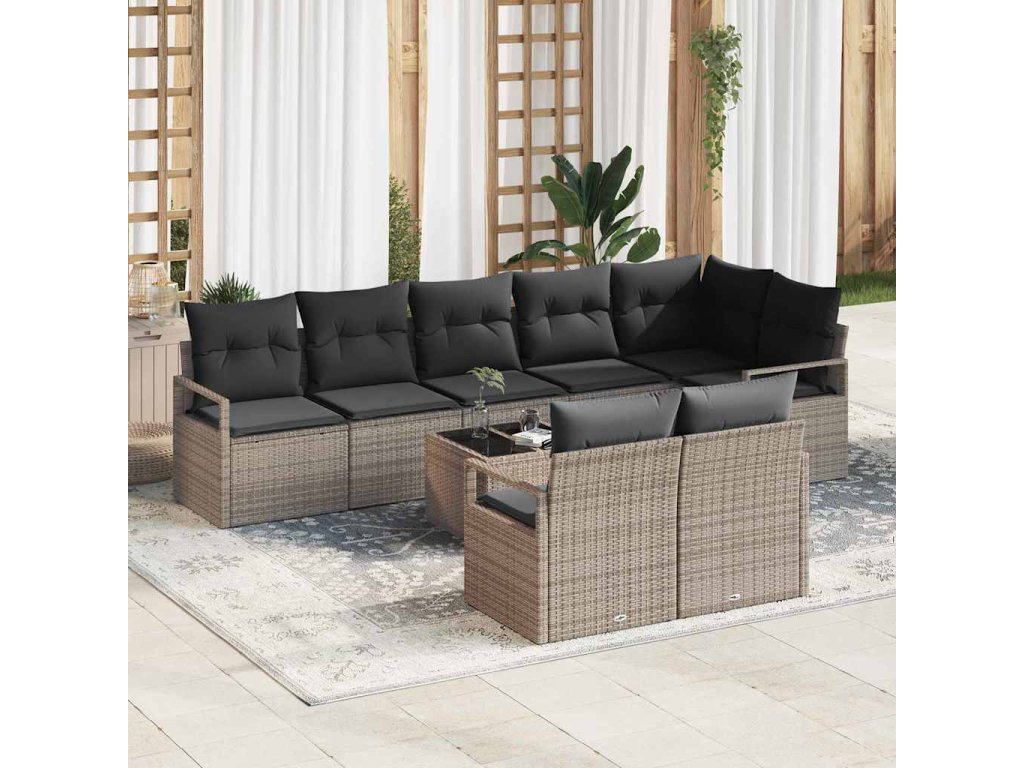 Sada zahradních pohovek s polštářem 9 pcs Světle šedá polyratan [3355108]