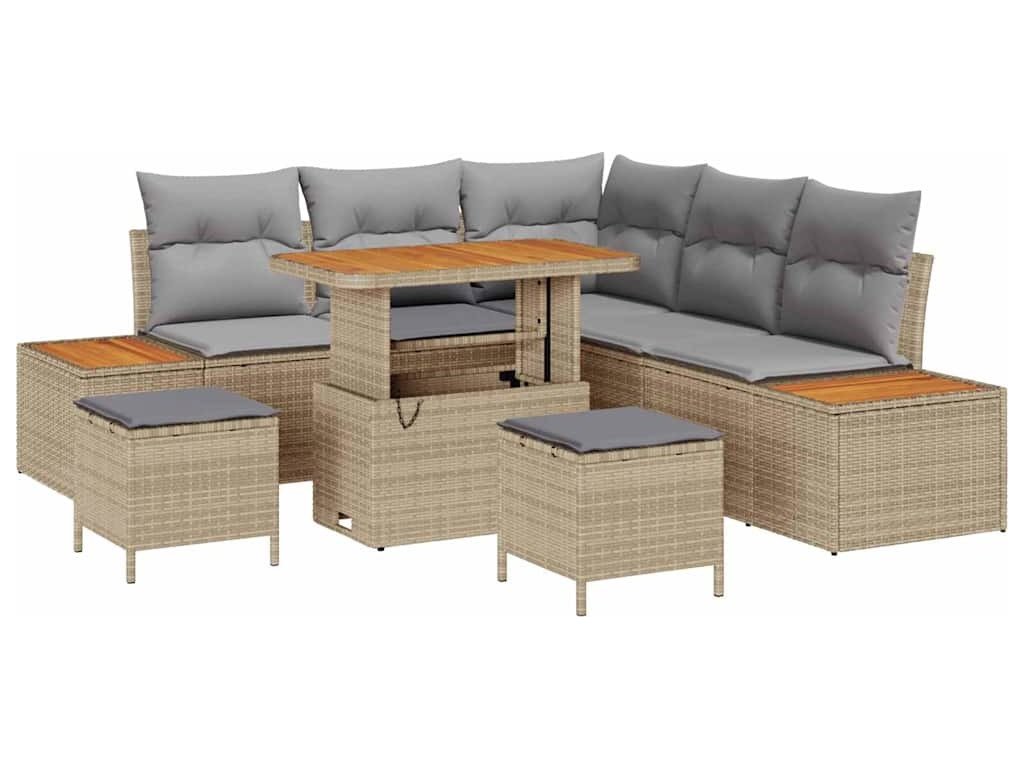 Sada zahradních pohovek s polštářem Béžová Poly ratan [3364867]