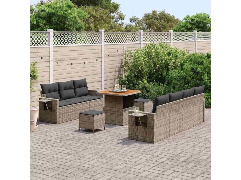 Sada zahradních pohovek s polštářem s úložištěm 10 pcs Šedá [3363658]