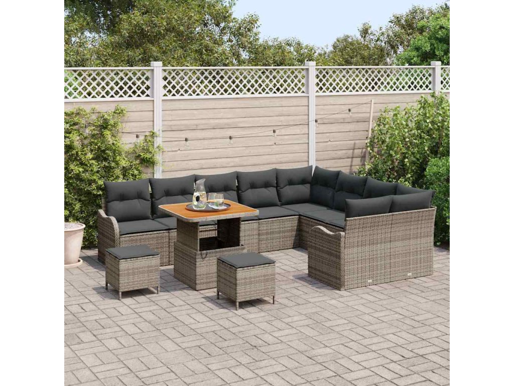 Sada zahradních pohovek s polštářem s úložištěm 12 pcs Šedá [3364253]