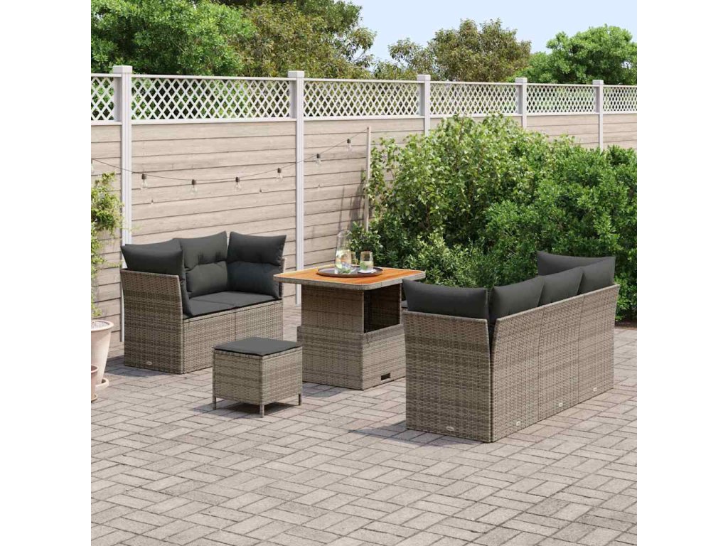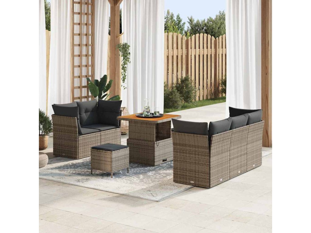 - Součásti včetně: Tato souprava nabízí gauč s pohodlnými sedáky a luxusními poly ratanovými opěrkami pro stylovou oporu. Stůl z akáciového dřeva doplňuje nábytek a nabízí místo na nápoje a snacky.