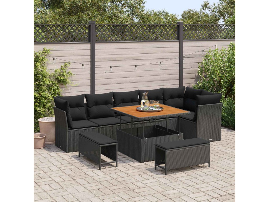 Sada zahradních pohovek s polštářem s úložištěm 9 pcs Černá [3363444]