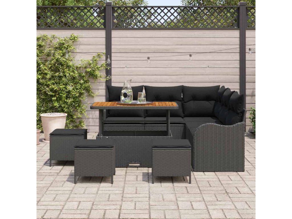 Sada zahradních pohovek s polštářem s úložištěm 9 pcs Černá [3364219]
