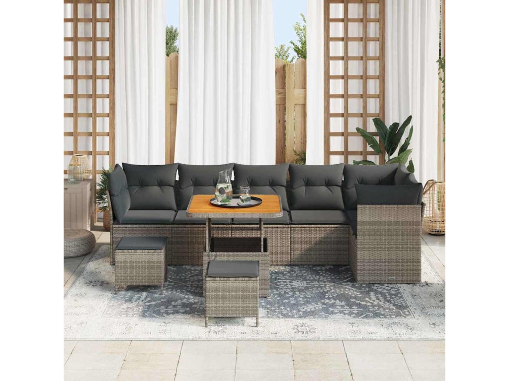 Sada zahradních pohovek s polštářem s úložištěm 9 pcs Šedá [3363453]