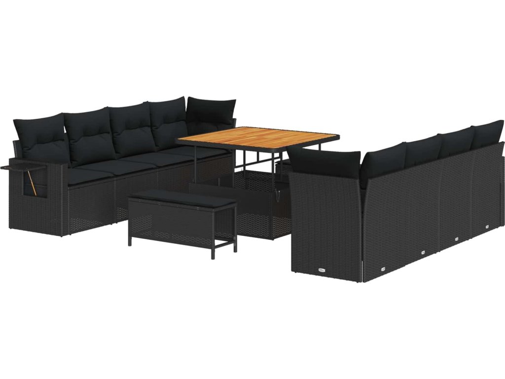 Sada zahradních pohovek s polštářem 11 pcs Černá Poly ratan [3361724]